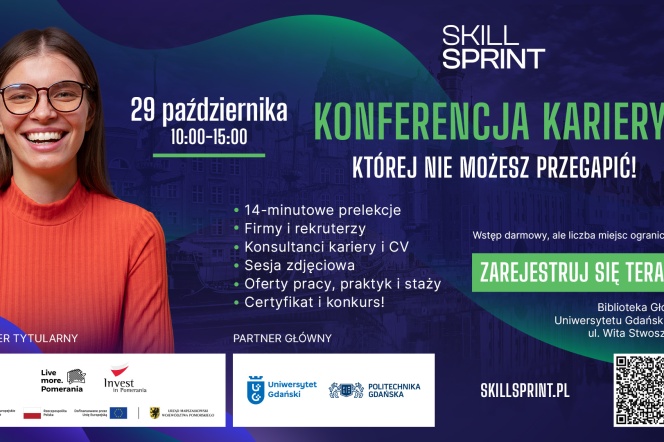 Już 29 października 2025 roku w Bibliotece Głównej Uniwersytetu Gdańskiego odbędzie się 6. edycja konferencji karierowej Skill Sprint - wydarzenia, które łączy studentów, absolwentów i przedstawicieli biznesu.