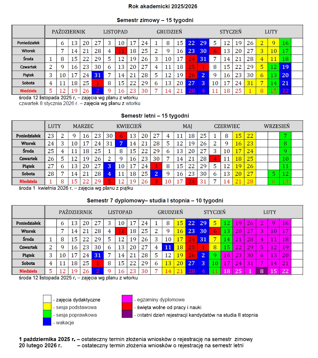 Nawigacja Studia Dziekanat Prodziekan ds. studenckich Harmonogram roku i plan zajęć Studia I stopnia Studia II stopnia Szkoła doktorska Regulaminy Zaświadczenia, dokumenty, procedury Aktualności Erasmus+ 2025/2026 Pismo okólne Rektora PG nr 29/2025 z 9 maja 2025 r. w sprawie: organizacji roku akademickiego 2025/2026 (pdf, 468.05kB) 2024/2025 Załączniki do pisma okólnego Rektora PG nr 20/2024 z 6 maja 2024 r. i nr 27/2024 z 29 lipca 2024 r. (pdf, 575.64kB) 2023/2024 Pismo okólne Rektora PG nr 21/2023 z 28 kwietnia 2023 r. w sprawie: organizacji roku akademickiego 2023/2024 (pdf, 224.53kB)